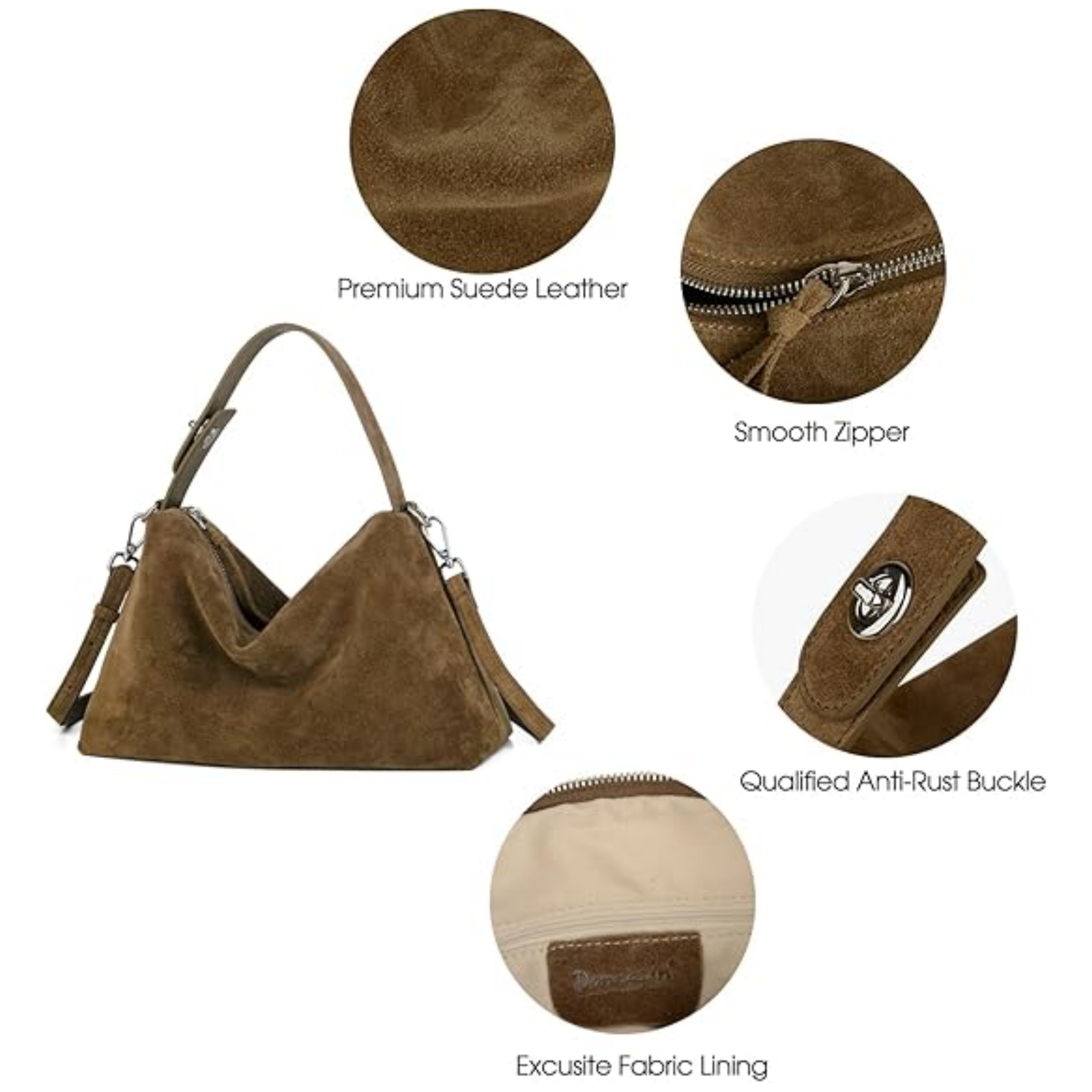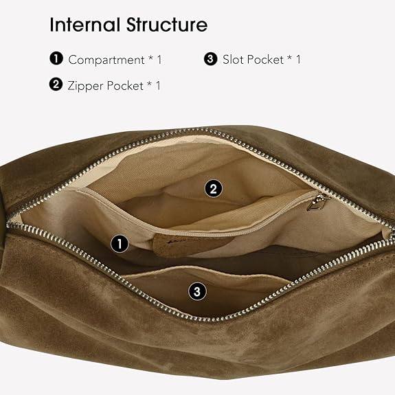STRUCTURE: Our Suede Handbag features 1 Compartment, 1 Zipper Pocket and 1 Slot Pocket, Easily holds your iPad Mini, Glasses Case, Cosmetic, Long Wallet, Power Bank, Card Holder, Umbrella, Mobile Phone, Keycase, daily necessities, keep your stuff secure and organized